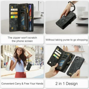 - [Multifunctional] -This wallet case features 8 card slots and 2 side pocket for money or additional cards. Convenient closure keeps all your valuables in place neatly and securely.